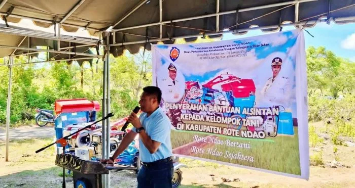 Bupati Rote Ndao, Paulus Henuk, secara resmi menyerahkan bantuan alat, mesin, dan prasarana pertanian kepada sejumlah kelompok tani di Kabupaten Rote Ndao, Sabtu (11/04/2026).